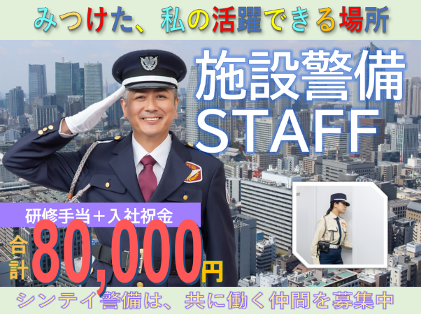 PRコメント 【仕事内容】 〇〇〇〇―――――――――――― 森のような安らぎの中で、人々が出会い、交流する場」 東京都中央区にある図書館でのお仕事です。 平日は実働6時間!自分時間もたっぷり確保♪ 通いやすい好立地☆彡 未経験からのスタートも大歓迎!もちろん経験者も活躍中☆ 本と人に囲まれた落ち着いた環境で、安心を守るお仕事を始めてみませんか? 図書館警備スタッフとして働いてみませんか? ――――――――ー ■安心・人気の施設警備 お任せしたいのはモニター監視や、巡回等のシンプルなお仕事です。 土日祝日は駐輪場の案内のお仕事もあります☆彡 特別な知識・経験がない方も丁寧な研修をご用意しているので、ご安心ください。 中高年から警備スタッフデビューした方も多数在籍中! ■経験・資格は一切不問! 入社後、必要な知識を丁寧にお伝えする研修を行うほか、 現場でも先輩スタッフがしっかりサポートしますのでご安心ください。 ★弊社は様々な前職から転職をした方々が活躍をしている企業です。 ★豊富なノウハウであなたの警備デビューをサポート致します! ■働きやすい環境! 手厚い待遇のもと、プライベートも充実した無理のない働き方を当社で実現することが可能です。 さらに、こまめな休憩があるからこそ、長く続けやすいこともポイント。 お仕事も一度覚えてしまえば簡単です。 体への負担が少ないからこそ、どなたにも始めやすい・続けやすい環境を整えています。 ■充実の手当あり ・入社祝い金5万円 ・研修手当3万円 ・賞与年2回 ※勤続年数、勤務日数により規定あり ★未経験でもしっかり稼げます ■社員登用推進中 現在弊社は社員登用を推進中です! 先の見通せない今だからこそ、景気に左右されにくい警備会社で働いてみませんか。 ★各種資格手当も充実! 資格取得費用・交通費は全て会社負担! 事前勉強会・試験当日も規定の賃金支払いあり!