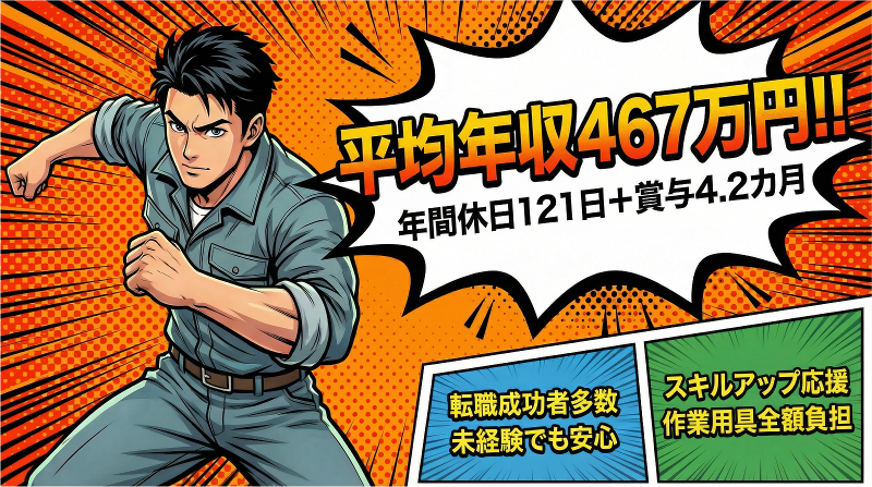 アピールポイント: ◎未経験・異業種からの 転職者も多数活躍中! ◎基本はチーム作業+ しっかり休憩ありで、初めてでも安心。 ◎年2回の賞与や各種手当もあり、 腰を据えて長く働ける環境です!