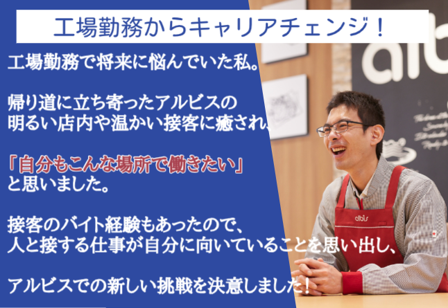 【保険制度】 雇用保険、労災保険、健康保険、厚生年金 待遇・福利厚生 【福利厚生】 <奨学金返済支援制度> 一定の条件を満たすことで、奨学金の月々の返済額の一部を補助します。 <社内預金> アルビス社員に特別な年率保証がされている嬉しい制度です。 <社員持株会> プライム上場企業ならではの制度、少額の投資で自社株を購入することが出来ます。 <社宅制度> 転居を伴う異動があった場合に利用します。契約金、毎月の家賃はもちろん会社負担です。 <お買い物金額割戻制度> 店舗でお買い物した金額の5%を翌々月に割戻します。 <GLTD制度(長期収入補償制度)> 病気やケガが原因で長期間仕事ができない場合に、在籍中・退職後を問わず、 最長で満65歳まで、収入の一定割合を補償する制度です。 <保養施設> エクシブ軽井沢に年2回まで従業員特別価格にて宿泊できます。 ※その他、確定拠出年金制度、団体総合定期福祉保険制度、各種慶弔金制度、社会保険完備 など ✅社員インタビュー! =================== Q:なぜアルビスを選んだのですか? =================== ✨<Aさん(男性/20代)> 高校卒業後に入った会社が工場勤務でした が、通勤途中のアルビスで新鮮な海産物や 惣菜に惹かれ、地域の食文化を支えたいと感じました。 スタッフの温かい対応や良好なチームの雰囲気に惹かれ、地域に喜ばれる商品を提供したいと思い、アルビスに転職しました。 お客様と直接会話し、直接感謝されるので モチベーションが上がる仕事です! ✨<Bさん(女性/20代)> 初めてアルビスを訪れた際、 食品へのこだわりや清潔感に感心し、 社員説明会で女性が働きやすい環境やキャリア重視の姿勢に惹かれ、 入社を決意しました。 整ったマニュアルや研修のおかげで 働きやすさを実感しています。 また、お魚を捌いたり、食材を使った調理に挑戦できるので、将来に役立つ技術も身に付きますよ。 ✨<Cさん(男性/20代)> 生活の変化をきっかけに、交代制勤務から 規則正しい働き方へシフト。 以前の職場だと夜勤もあり、 パートナーとの時間を大切にするのが 難しく、生活のリズムが取りにくかったんです。 規則正しい生活を求め、 人と関わることが好きで、食にも興味があったので、アルビスでキャリアチェンジしました。 今では安定した生活リズムの中で、 やりがいのある仕事に取り組んでいます!