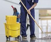 オフィスビル内の清掃スタッフ