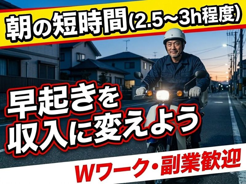 仕事内容 / ✅深夜~早朝のオシゴト ✅週2~3日勤務でOK ✅Wワークも大歓迎! ✅ローテーションシフト制 ✅原付免許があればOK ✅時間帯の相談OK \ 【お仕事内容と収入例】 ■朝刊配達:月7万円~11万円 ⇒担当エリアの読者様へ朝刊をお届けします。 ■リーフ配布:週2日程度/月4万円~7万円 ⇒新聞と一緒にチラシなどを配布します。 ■集金:月末に3、4日程度/月2万円~3万円 ⇒読者様から購読料を回収します。 ■折込機作業:土曜・祝日前日/月2万円 ⇒チラシなどを新聞に折り込む作業です。 ※全て部数(作業量)により給与変動あり。 ⭐上記全て頑張ると、月収18万円以上も可能です! 【配達エリア】 帯山・保田窪・長嶺方面 出水・国府・本山・九品寺 ✅慣れるまでは先輩に同行 ✅作業量は調整するので安心 ✅バイク貸出しあり