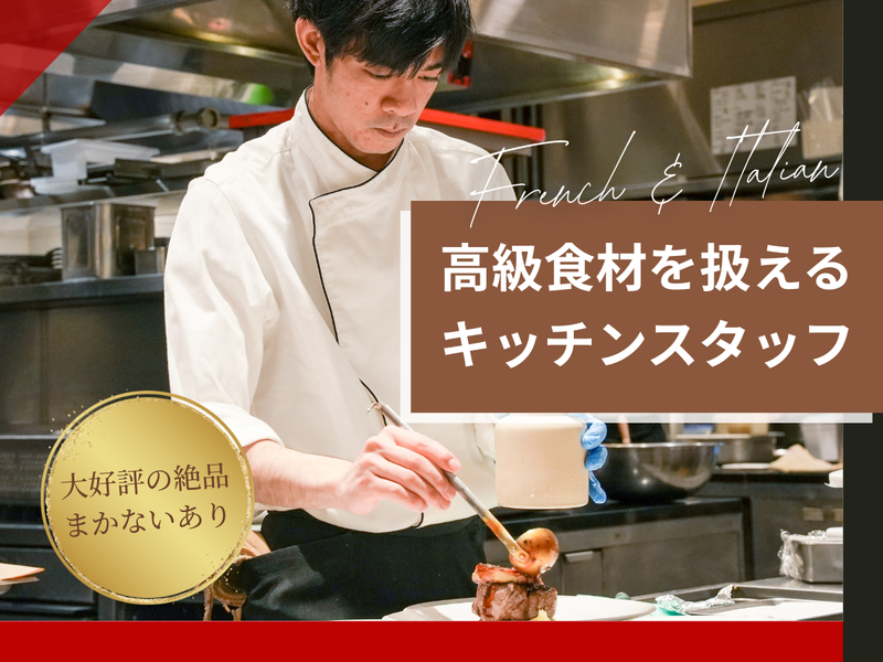 求めている人材 【必須】 ・飲食店での調理経験があり、 即戦力としてご活躍いただける方 【こんな方を歓迎します】 ・フレンチ、イタリアンの実務経験がある ・自分の得意分野をさらに極めたい ・高級食材を扱いながら技術を磨きたい ・スキルを活かせる仕事を探している ・待遇がいい職場で柔軟に安定して働きたい