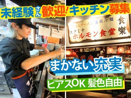 仕事内容 ◎髪色・ピアス自由!推しカラーOK♪/食樂で楽しく働こう! \食樂で働くポイント/ ・髪色、髪型自由 → 金髪も推しカラーもOK! ・ピアスOK(規定あり) ・焼肉店ならではのまかないあり! → メニュー80%OFF+白ご飯無料★ スタッフ同士の協力体制バツグン 社割あり!店内飲食代20%OFF ■キッチンのお仕事 ・調理全般 サラダの盛り付けや冷麺作りなど ・食材の仕込み 野菜のカット、下準備など ・調理場清掃・洗い場 食器洗浄機ありあります◎ ・ダクト清掃(営業時間終了後) ■学校帰りにサクッと働ける!学業優先OK ・授業・テスト・サークル活動をしっかり考慮 ・夕方・夜のスキマ時間を有効活用 ・土日だけの勤務もOK ・まかないで食費節約!盛岡冷麺やビビンバが150円台~ ・就活や試験期間の休み相談も柔軟対応 ■まかない&社割あり♪ *お肉と海鮮以外のメニューが税込から80%OFF! *白ご飯無料で学生さんにも大人気! *社割で店内飲食代20%OFF ※社割はKYコーポレーション運営店舗で利用できるのが嬉しいポイント☆(一部店舗のぞく)