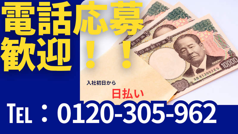 仕事内容 ✨✨✨オススメポイント✨✨✨ ✅point1 日払い現金手渡しOK! ✅point2 ワンルームの個室寮完備 ✅point3 残業はほぼ無し!直行直帰OK 現場迄の移動交通費支給! ―――――――――――――――――――― ✨この時点で応募したい!という方歓迎✨ (応募受付専用の電話番号:0120-305-962) 「作業員の求人を見た」と伝えてください! 最初の面接は来社不要! まずは電話面接のみでもOK! ―――――――――――――――――――― 【仕事内容について】 工事現場の多能工 雑工・土工・清掃クリーニングなど 手元は、工事現場で作業の手伝い・片付等! 一人作業ではないので安心! 難しい作業、専門的な作業は無(経験者は除く) ―――――――――――――――――――― 【ある一日の流れ】 ■8時に現地入りし、作業に入ります ■10時前後に小休憩 ■12時~13時は昼休憩 ■15時前後に小休憩 ■17時ごろに作業終了! ※現場により、定時前に終了する事もあります! ―――――――――――――――――――― ※横浜市・川崎市・東京都周辺エリア以外にも 現場は多数あり!「仕事がなくて働けない」 なんてことはありません。 ※転勤・異動無し 【事業内容】 建設業許可 神奈川県知事許可(般-2)第87835号 キャリアアップ登録事業社 ビルディー登録事業社 【ホームページ】 https://www.fellowsplus.com/