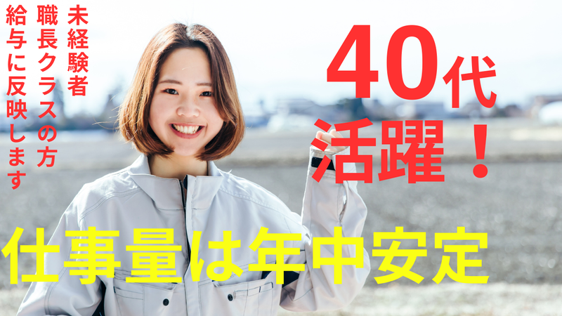 職場環境 幅広い年齢層のスタッフが在籍しており、 職長クラスの職人さん、 掛け持ちして働く職人さん、 未経験だけど週5.6日働く方など、様々! 所長が面倒見が良いので、安心して働けて 定着率が高いのも魅力!