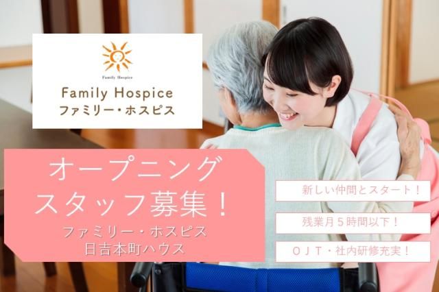 【日吉本町ハウス】介護職(訪問介護経験者歓迎)ホスピス未経験OK! ≫≫高齢者施設での訪問介護スタッフ≪≪ ◆残業ほぼなし♪ ◆やりがいのある職場でステップアップも可能! ◆医療依存度の高い利用者様が多いため、たくさんの学びがあります♪ ◆ブランクがあったり経験に自信のない方も是非お問い合わせください! ――――――― 一緒に働く人は??? ――――――― 訪問介護ステーション、老人福祉施設等での勤務経験者や未経験から弊社で資格を取得された方など様々な経験をお持ちのスタッフが弊社の施設で活躍しています。 その多くがホスピス住宅という新しい形の施設での働き方に興味・関心を持ち、利用者様の為に、日々業務に励んでいます。 ――――――― 今回、勤務して頂く訪問介護事業所では、人生のエンディングロールを迎える方のサポートを行なっています。 利用者様一人ひとりが最期まで自分らしく過ごせるよう寄り添ったケアを提供。 例えば、大好きなコーヒーやお酒を飲んだり好きなごはんを食べたり…。 病院では実現できなかった希望を叶える事も、弊社のホスピス住宅なら可能。好きな事ができるので、最期まで笑顔で過ごして頂けます。