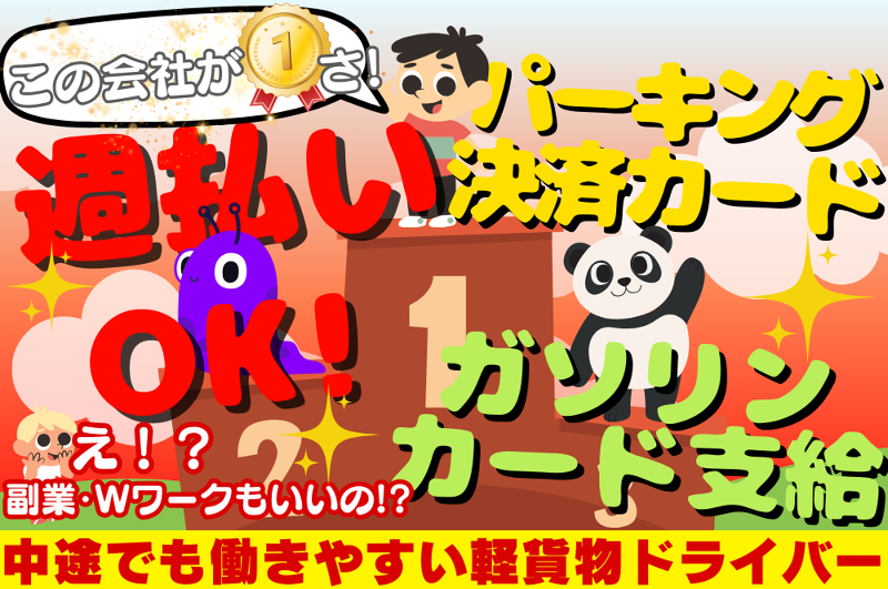 ✨電話応募可能!090-2528-1211✨【入社で50,000円支給⭐️】✅車・ガソリン無料コースあり✅パーキング決済カード貸与✅直行直帰OK✅配送件数調整OK✅配送フォロー体制抜群✅シフト制(日・月は固定休み)✅配送に重要な情報は逐一発信します!✅入社後全員✨5万円✨プレゼント✅結婚祝い贈呈✅誕生日に選べるプレゼント(ポチ袋・お米・ギフト券)など✅週払いOK