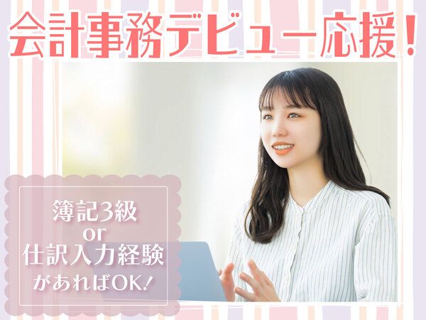 【会計事務デビュー応援!簿記3級or仕訳入力の経験があればOK!】週3日~×5h~/家庭や育児と両立〇!当社スタッフ活躍中!