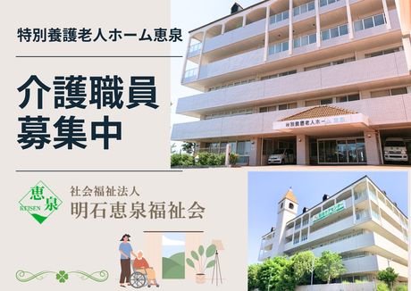 仕事内容 「通勤時間は短い方が嬉しい!」 「ブランクOKの職場で無理なく働きたい!」 「月8万くらい収入が欲しい!」 まずはあなたのご希望・ご要望をお聞かせください! 目指したい働き方を一緒に実現していきましょう! ■勤務開始の相談ok!春からのスタートもokです■ ■すぐに働きたい方は、すぐにご紹介も可能です■ 【仕事内容】 【マイカー通勤OK/シャトルバスあり】様々な通勤方法が叶います◎短時間勤務も可能です! 特別養護老人ホームにて介護職員を募集します。 《業務内容》 ◆食事・排泄・入浴などの身体介助 ◆レクリエーションや外出のサポート ◆機能訓練の補助 ◆季節の行事やイベントの企画 ◆夜間の見守り、緊急時の対応 ※部屋の掃除や洗濯物をたたむなどの業務は介護補助や清掃のスタッフが担当するため、介護業務にじっくり取り組めます。 ※記録はタブレット入力の電子カルテを導入。事務作業の効率化を図っています。 利用者様としっかりコミュニケーションを取り、他職種のスタッフと協力しながら満足いただけるサービスの提供を目指してください! 【こちらの求人はご紹介求人です】 有料職業紹介事業許可番号:28-ユ-300917 【明石恵泉福祉会の特徴】 《多種多様なサービス》 居宅サービスやケアハウスでの「介護予防」から介護保険施設の「手厚いケア」まで、統一敷地内での施設・住居サービスを切れ目のない「ワンストップ」で提供することで地域のあらゆる介護ニーズにお応えし、ご入居者おひとりおひとりのちょっとした幸福感・満足感をどのステージでも実現することを目指します。 《生活期リハビリテーション》 『生活期リハビリテーション』とは、「目の前の1人のひとの健康や幸福を考えるため、その人の生きてきた人生に目を向け、みんなで話し合いを行いながら、多角的に捉えることで多くの強みや可能性を見出し、活動につなげていくこと」です。このような取り組みを法人一丸となって推進しています。 《ゆったりとした広大な敷地》 広い敷地を活かし、ゆったりとした環境でパーソナルスペースの確保や充実した各施設でサービスを提供できることも明石恵泉福祉会の特徴です。 明石恵泉福祉会ではご入居される方との絆を深め、その人らしい人生を最後まで安心して送ることができるように、グループ全体で支援します。 【特別養護老人ホーム 恵泉】 広いフロアで、多くの方とともに生活する事ができる施設です。 個室・2人部屋・4人部屋からその方に合った生活空間を選択していただき、食事・排泄・入浴のケアのみでなく、趣向に応じた楽しみある生活をお送りいただきます。 《定員》 ・特別養護老人ホーム:80名 ・短期入所生活介護:20名 《ご利用対象者》 原則要介護度認定3~5の方 【ブランクが長いのですが、本当に働けますか?】 →もちろん大丈夫です! 当施設では、育児や介護などで現場を離れていた方の復職実績も多数。 はじめは簡単な業務からスタートし、慣れるまで丁寧にフォローします。 「久しぶりで不安…」という方も安心してご応募ください。 主婦(主夫)さん、ブランク復帰の方、第二新卒など 年齢などに制限はございません!あくまで人柄重視の採用基準です。 誠実で思いやりを持って働いて下さる方であれば大歓迎! スタッフインタビュー! ・「以前はパートやアルバイトでグループホームで働いていた」 ・「副業(Wワーク)で夜勤専従で勤務していた」 ・「介護施設や福祉施設を転々とし、短期間しか働いた事が無かった」と経験も様々! ※他にも「グループホームでしか働いた事が無い」「デイサービスしか・・」「特養しか・・」「訪問介護しか・・」等々。 経験がある方もない方も安心して初めて頂ける環境をご用意しておりますのでご安心ください。20代、30代、40代、50代活躍中!