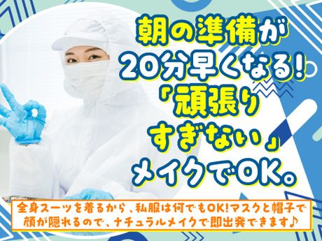 資格 【求める人材】 ■こんな方にピッタリのお仕事です ・「仕事と私生活をきっちり分けたい」 →17時定時退社を徹底しているため、夕飯の支度や 家族との時間を大切にできます。 ・「コツコツ・モクモク作業が得意」 →複雑な判断よりも、決められた手順を丁寧に 進める作業が好きな方に最適です。 ・「夏も冬も快適な環境で働きたい」 →年中25℃前後の超清潔な職場。汗による メイク崩れや冷えの心配もありません。 ・「安定感のある職場で長く続けたい」 →誰もが知る大手グループの現場。教育体制や ルールが整っており、安心感は抜群です。