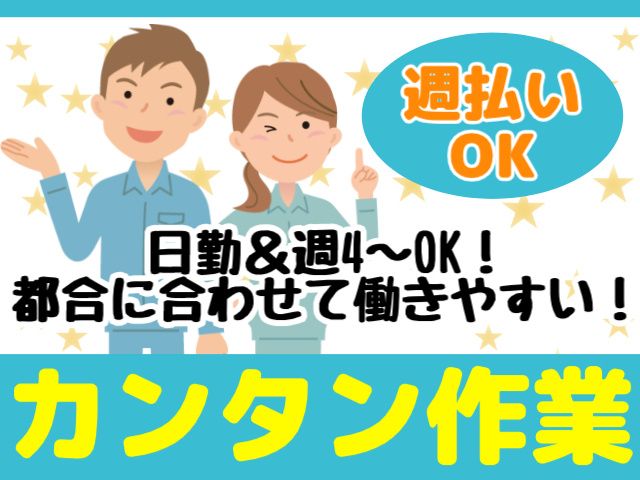 【週4日~勤務OK】 週払いOK/日勤/交通費支給/お休み選べる! 履歴書不要だから応募がカンタン!