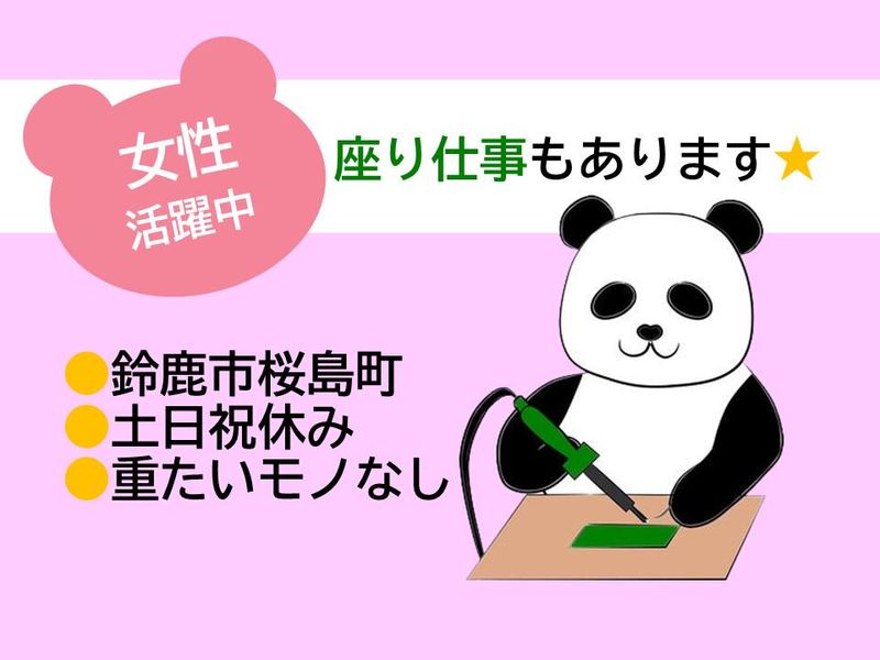 仕事内容 \女性活躍中のお仕事/ 日勤のみ×軽作業で職場環境も良好◎ ◇電気部品となるインバーターの組立 ◇部品を電子機械の基板に取りつけ ※入社日相談可 「キレイな職場で働きたい」 「モノづくりに興味がある」 「髪色・ネイル・服装自由な所で働きたい」 そんな方にピッタリの職場です! ー 【お仕事内容】 電気部品の製造をしていただきます。 重たいモノを持つ心配も無し、 力も必要ありません。 流れ作業にはなりますが 未経験からでも始められるお仕事です★ ー 【未経験スタート9割以上】 「工の名前すら知らなかった」 そんな方も活躍している職場です◎ ✅ 教育担当の先輩がマンツーマンで指導 ✅ 覚えるまでは簡単な作業からスタート ✅ 作業は分業制なので「いきなり任される」ことはナシ! ー 【働きやすさポイント】 ✔ 幅広い年代の男女活躍中 ✔ 残業なしで予定が立てやすい ✔ モクモク作業中心!人間関係のストレス少なめ ー 【こんな方におすすめ】 ・未経験から工場の仕事に挑戦したい方 ・シンプルな工場作業で安定収入を得たい方 ・スタートを合わせたい人 ・地元で長く働きたい方 ・「ネイル」「髪色」「服装」自由に働きたい方