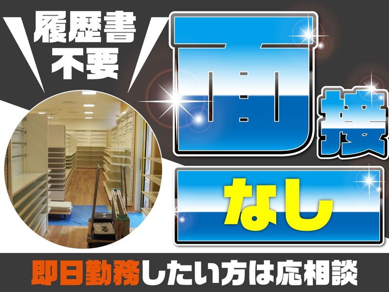 仕事内容 ✦ ――――――――――――――― ✦ 【新規入社限定】奨励金3万円支給! ✦ ――――――――――――――― ✦ 出勤するほどもらえる!初月から対象◎ 段階制の奨励キャンペーン♪ (※規定あり) しかも【現場終了の翌日に振込】 →頑張った分がすぐ手元に! <支給例> ■10現場達成 :5,000円 ■20現場達成 :10,000円 ■30現場達成 :15,000円 ―――――――――――――――― ▼この仕事のポイント♪ ✅新規入社者は奨励金3万円支給 ✅夜勤なら月収30万円以上も可能 ✅日払い・週払いOK ✅週1日~/短期OK ✅日勤・夜勤が選べる ✅未経験歓迎 ✅即日勤務OK ✅全額日給保証 ✅直行直帰OK ✅チーム作業で安心 ―――――――――――――――― <仕事内容> ・店舗什器(棚・カウンター・レジ台など)の搬入・搬出・設置 ・オフィス家具の搬入・搬出・設置 ・備品などの搬入・搬出・設置 ◆1現場3~5名のチーム制 ◆重いものは協力して運びます ◆難しい作業はありません <勤務地多数!> 東京都内を中心に多数! 池袋/新宿/渋谷/品川/上野 ほか多数 ◎駅チカ案件多数 ◎希望エリア考慮します 「今すぐお金が必要」 「スキマ時間で働きたい」 「ガッツリ稼ぎたい」 「体を動かす仕事が好き」 志望動機は何でもOK! 学⽣〜20代・30代・40代の男性活躍中です♪ スタッフの声✨ ━━v━━━━ ■20代男性・フリーター 「日払いだからすぐ収入になるのが助かります!スマホで登録もできて、すぐに働けるのが便利です!」 ■30代男性・フリーター 「体を動かす仕事が気分転換にもなるし、仲間と協力して達成感も味わえるのが楽しい!」 ━━【 働き方は自由♪ 】━━ 「週1だけ」 「副業として」 「週5でガッツリ」 などライフスタイルに合わせてシフト相談OK! 働き方はご相談くださいね◎ Wワーク・フリーター・学生も大歓迎!!