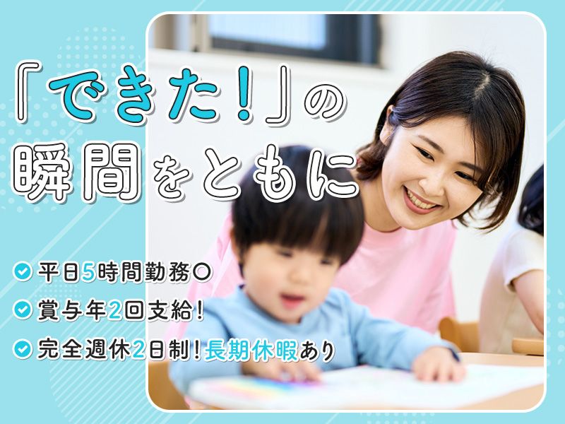 仕事内容 ⋈・。・。⋈・。・。⋈・。・。⋈ 【短時間勤務OK!残業ほぼナシ!】 小さな成長が、大きな喜びに。 ご家庭の都合に合わせて、 あなたの資格を無理なく活かせる 新たな保育を始めませんか? ⋈・。・。⋈・。・。⋈・。・。⋈ ↓↓ 求人のPOINTを要チェック ↓↓ *…*…*…*…*…*…*…*…*…* 【シフト融通度:◎ 家庭優先で働けます!】 ✨残業ナシ!(平日午後のみの短時間勤務) ✨長期休暇あり!急なお休みも柔軟に対応、 ご家庭都合休OK 週4日勤務など相談可能! ✨賞与年2回支給!頑張りを給与に反映 ✨ピアス・ネイルOK〇(華美でないもの) 【仕事内容】 障がいや特性のある子どもの保育と 療育支援の業務をお任せします ・送迎および添乗(AT車のみ) ・季節の製作やイベントの企画・準備 ・清掃 ・連絡帳 ※支援記録等の事務作業は社員が担当します。 午前中は清掃や準備・情報の共有など 午後から送迎や療育活動を行い、 定時に退社しています! 現在の利用者年齢:3歳~中学1年生まで (6~8歳の小学校低学年が中心) お子様は1日に10名まで! 30代・40代のスタッフを中心に 基本4名体制で働けます♪