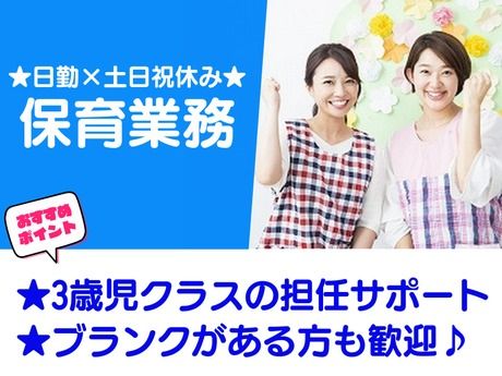 <★短期×短時間OK♪>3歳児クラスの担任サポート★未経験歓迎◎日勤×土日祝休みで働きやすい!