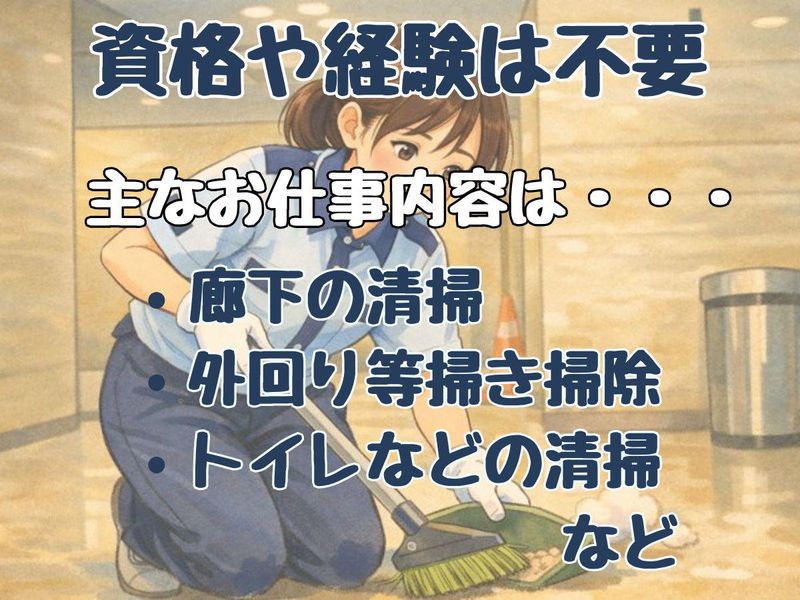求めている人材 ・経験不問 ・資格不問 ・学歴不問 未経験大歓迎 こんな方にピッタリ □清掃スタッフ・施設管理の経験がある □マンション・公共施設の清掃経験がある □コツコツ作業が好き □正社員は体力的に不安 □定年後も無理なく働きたい □地域に役立つ仕事がしたい ※もちろん未経験スタートの方も多数います!