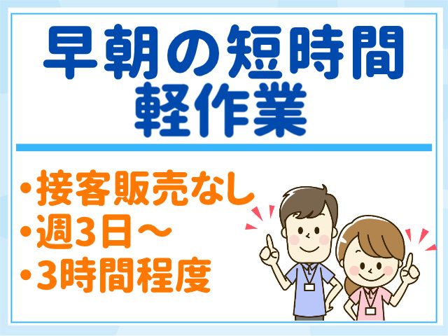 勤務時間 5:00~の3時間程度(終了時間変動の場合あり) 勤務/火・木・土の週3日、長期勤務可能な方尚可!