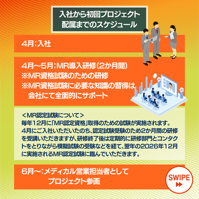 仕事内容 看護師から未経験MRに転職可能! 【この求人の特徴】 ★夜勤・シフト勤務から解放(完全週休2日/土日祝) ★臨床経験(看護師など)を営業経験より重視 ★評価の平均6割は「プロセス・行動」(ノルマ不安なし) ★年間休日122日(平均有休取得15日) ★入社3年目で年収600万円以上も可能(年収UPを実現) ★充実の研修(約2ヶ月・320時間) ✅《具体的な業務内容》 製薬企業のパートナーとして、 担当する医薬品や医療機器の 適正使用情報を医療機関(病院、クリニック) へ提供し、普及させる活動を行います。 「売る」仕事ではなく、医師や薬剤師へ 最新の医学・薬学情報や臨床データを 「伝え」「収集する」仕事です。 <担当領域(例)> 配属は適性や希望を考慮します。 ・オンコロジー(がん) ・糖尿病、循環器 ・呼吸器、自己免疫疾患 ・バイオ医薬品 ・医療機器(SR) など <主な訪問先> ・大学病院、基幹病院、クリニックの医師 ・薬剤師、看護師、医薬品卸など <1日の業務内訳(目安)> ・医療機関への訪問・情報提供:約60% ・訪問準備、学習(製品知識、論文読解):約30% ・日報作成、社内ミーティング、事務作業:約10% ※原則、直行直帰の営業スタイルです。(配属先企業による) ※社用車(AT)を貸与します。 【アピールポイント】 ✅《「営業ノルマ」への不安、払拭します》 看護師からMRへの転職で、 最も多くの方が不安に感じるのが 「営業ノルマ」や「数字へのプレッシャー」です。 サイネオス・ヘルスでは、 その心配は必要ありません。 私たちの評価制度は、 「薬の売上」より「有益な情報提供」 という『行動』を最も重視します。 単に薬がどれだけ売れたか、ではなく 「医師へ有益な情報を何回提供できたか」 「勉強会を企画し、信頼関係を築けたか」 といった患者様の利益に繋がる 日々の「行動」を最も重視します。 「どうすればもっと良くなるか」を 一緒に考えるサポート体制を整えています。 ✅《なぜ「営業経験」より「臨床経験」か》 私たちがMR未経験の看護師の 皆さんを歓迎する理由は明確です。 それは、MRの仕事が「モノ売り」ではなく、 医療の専門家と対等に話せる 「知識」と「信頼」が全てだからです。 医師が今、何を求めているか。 患者様の背景にはどんな事情があるか。 あなたの持つ、現場の「解像度」の高さこそが、 医師の真のニーズを深く理解する上で 最強の武器となります。 あなたの臨床経験は、 MRとして最高のスタートダッシュを 可能にする「専門スキル」なのです。 ✅《臨床現場を離れる、という選択について》 あなたの貢献の形が変わるだけです。 夜勤やシフト勤務から解放され、 土日祝休みの規則正しい生活と 将来に繋がるビジネススキルを 手に入れながら、今度は「情報提供」という形で、 より多くの患者様に貢献するのがMRの仕事です。 キャリアパスも広がり、 将来は本社勤務(管理部門)など、 新たな道に進むことも可能です。 ✅《勤務地に関する不安について》 現在の居住地+住んでみたい・働いてみたい 5都道府県を共有いただきます。 私たちは個人の事情を 最大限尊重することを約束します。 その後の異動についても、 年1回のキャリア面談などを通じて 本人の意向やライフイベント (結婚、出産、介護など)を 十分にヒアリングした上で決定します。 不安な点は、面接の場で 遠慮なくご相談ください。 ✅《万全の研修体制》 入社後は約2ヶ月(320時間)の 手厚い導入研修をご用意。 膨大な医薬品知識や医療制度はもちろん、 看護師の方がつまずきやすい PCスキル(Excel, PowerPoint)や、 名刺交換などのビジネスマナーまで 専任講師がゼロから丁寧に指導します。 配属後も、上長との週1回の面談や、 OJT同行(配属後1ヶ月は週2回程度)など、 チーム全体であなたをサポートします。