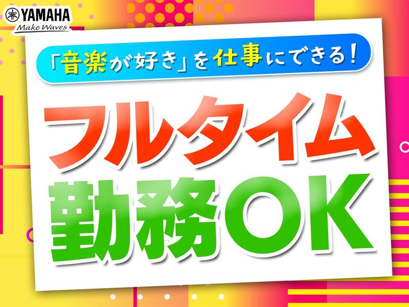 仕事内容 \ヤマハミュージック 岡山店/ 【楽器販売など店舗スタッフ】 無資格&未経験から始められる! ”YAMAHA”の店舗スタッフを募集! ★ヤマハ商品を中心にご案内いただき、 『ヤマハブランド』の魅力を伝えていただきます。 ――【仕事内容について】―― ■店頭でのお客様対応 ■商品の販売に関わる業務 ■商品の仕入れ、展示陳列 ■イベントの準備運営 ■簡単なPC入力作業 ■企画展示補助 などの業務をお任せいたします! いきなりすべて覚えていただくわけではなく、1つ1つお仕事が学べる環境が整っております。 まずはご来店いただいたお客様へ 気持ちよくご挨拶・ご案内ができればOKです! 音楽の経験・知識は一切不要! 未経験の方でも活躍できる環境です。 ひとりでも多くの方に、 広く長く音楽を楽しんでいただけるよう 丁寧な対応を心がけましょう! 音楽が好きな方、 人とお話することが好きな方大歓迎! ――【充実した研修制度あり】―― 2つの研修でしっかり学べる! ・店舗では先輩staffが指導の下 実際に業務を進めながら丁寧に研修を行っております! ・ヤマハでは定期的に実践で活かせる動画をUP! など実際に実務+動画でしっかり学べる環境があります! 「未経験でいきなり一人で接客」などの心配はございません◎ ――【業界No.1!安定のブランド力】―― ヤマハの楽器や店舗・教室指導など お子さま~大人まで、名前を知っているブランド力があります。 CMで知っているという方も多くいますが ・音楽教室に通っている生徒さんのご来店 ・大人になってからの趣味で来店される方 ・部活で吹奏楽部に入っていて来店される方 ・ライブ前のお手入れ用品をそろえるために来店される方 など様々なきっかけで当社を知っていただき ご来店していただいております! 【店舗スタッフ】のお仕事も そんないろんなきっかけでご来店されるお客様に まずは気持ちよくお買い物をしていただけるよう サポートするお仕事です◎ まずは少しずつできることを増やしていただき 「またヤマハに来店しよう」 そう思っていただけるような接客ができる方を お待ちしております♪ ――【こんな方はぜひ!】―― □子育てが落ち着いた主婦(夫)さん □音楽が好きな方 □ヤマハに通われていた方 □人と話すことが好きな方 □音楽に携わっていた方 □プライベートと両立して働きたい方 □趣味を仕事にしたい方 など 志望動機は何でもOKです! ぜひ面接でお聞かせ下さいね♪