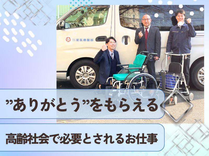 仕事内容: / ノルマはありません! ガツガツした営業ではなく、利用者様に寄り添い、 チームで対応する温かみのある営業職です \ ▼年間休日120日・残業月平均20時間 ▼”ありがとう”をたくさんもらえるお仕事 ▼今後ますます必要とされる将来性あるお仕事 ▼20名ほどの先輩スタッフの手厚いフォロー ▼未経験者も多数活躍しています ........................................................ 【仕事内容】 「自宅で安全・快適に暮らしたい」と願う利用者様のために、介護福祉機器のご提案を行います。 <扱うもの> ・車いす、介護ベッド、手すり、スロープなどの介護福祉機器 ・手すりの設置や段差の解消など住宅改修 <接する方> ケアマネージャー、在宅介護を利用されている方 \お仕事の流れ/ まずはケアマネージャーさんへご挨拶 ↓ ご信頼いただけると在宅介護を 利用されている方をご紹介いただけます ↓ 利用者様のご自宅訪問 ↓ 最適な機器のご提案と導入 \入社後の教育・サポート体制/ 入社後は、未経験でも安心してスタートできる研修をご用意しています。 ▼STEP1:座学研修 介護業界の仕組みや保険制度など、基礎からしっかり学びます。 ▼STEP2:同行研修 先輩の車に同乗し、実際の営業を見ながら覚えていきます。困った時は、先輩がすぐにフォローしてくれる安心環境です。 ▼STEP3:外部研修&資格取得 1週間の外部研修を受けて「福祉用具専門相談員」の資格を取得いただきます。 費用は会社が全額負担!学びながら資格が取れるチャンスです。 【星医療酸器について】 1960年に「星プロパン」として創業。 1970年には医療用酸素ガス販売をスタートし、 2010年には介護施設を開設するなど、 「命」と「暮らし」に真正面から向き合い、 社会に貢献してきました。 2000年にJASDAQ上場を果たし、 企業としての基盤も確かなものがあります。