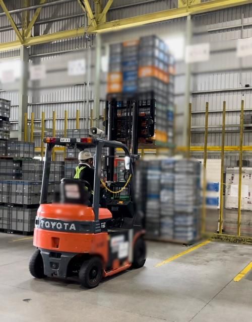 倉庫内で空箱を運ぶフォークリフト