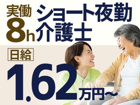 \実働8時間のショート夜勤!/日給1万6200~1万7800円|週3回~相談OK|交通費全額支給☆