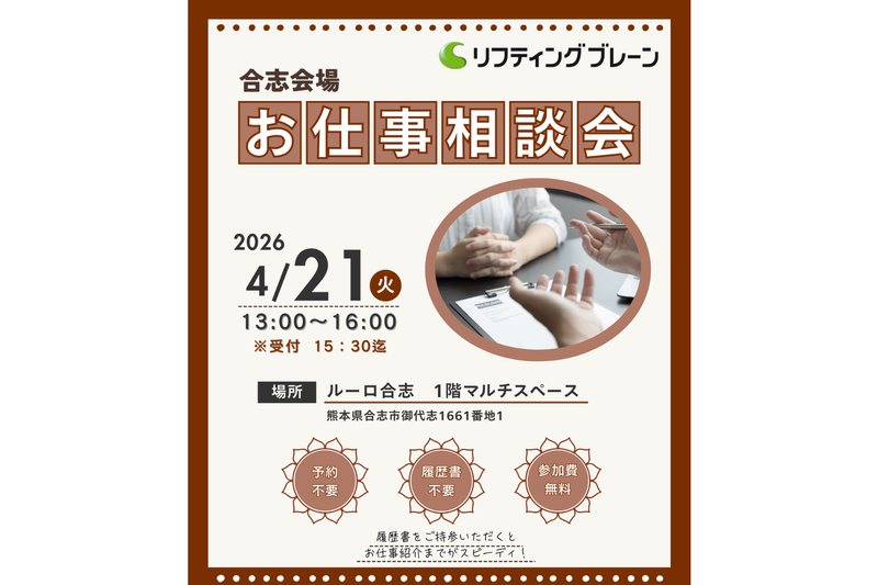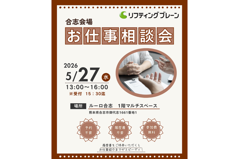 ■応募後の流れ 【人材派遣の流れ】 STEP1|かんたんWEB登録 ・まずはWEBから登録 ・来社日程を調整します STEP2|来社面談(本登録) ・お仕事に関するご希望・経験・資格をヒアリング ・職種に応じた適性テストでスキルチェック ・応募書類提出&登録シート記入 ・あなたに合ったお仕事をご案内 STEP3|職場見学/会社面接 ・実際の職場を見学:両目: ・紹介予定派遣は企業面接あり ・面接時もスタッフがしっかりサポート STEP4|就業意思の確認 ・合わなければお断りOK ・別のお仕事もご提案します STEP5|入職時研修(派遣前研修) ・安心してスタートできるように事前研修を行います STEP6|就業開始 ・初日は担当者が同行してフォロー / 最短でご応募~採用まで 1週間程度でご案内が可能です。 ご本人様のご都合に合わせて調整致しますので 安心してご応募ください。 \ ■応募受付電話番号 096-337-3214 ※電話番号に関する補足: いつでもお気軽にお問い合わせください。 ■個人情報の取扱いについて ご提供いただいた個人情報は、採用選考及び結果等の通知・連絡の為に利用いたします。 それ以外の利用目的または法令等に基づく要請の範囲を超えた利用はいたしません。