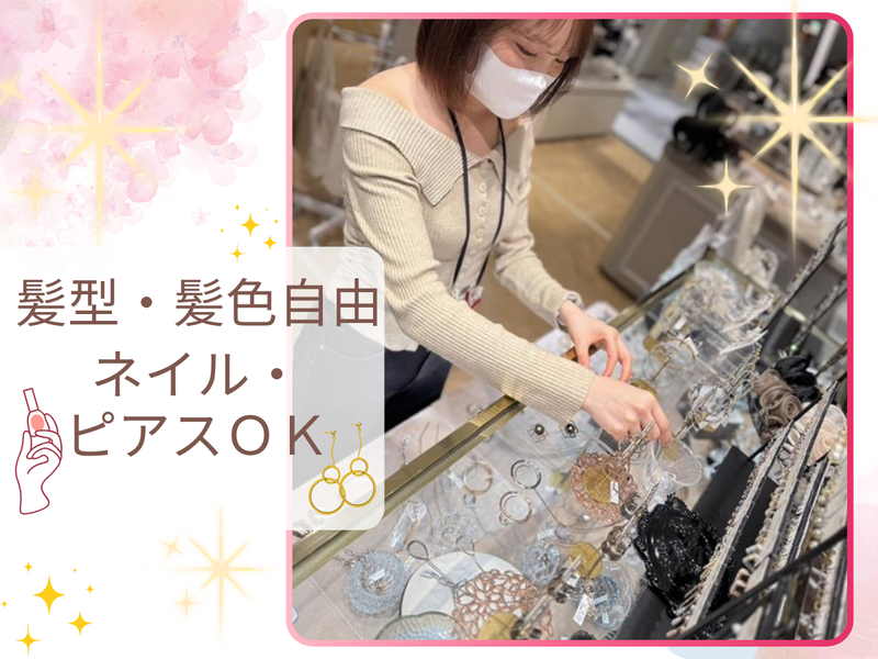 仕事内容 <雑貨・アクセサリーが好きな方大歓迎> ◆未経験OK! ◆フリーター・主婦(夫)・学生大歓迎! ◆週1日~・週2,3日OK! 短時間勤務OKなので 家事育児との両立もしやすいです! 働き方も柔軟に対応します◎ 髪型髪色自由!ネイルOK! オシャレを楽しみながら働けます◎ --------------- 仕事内容 --------------- 「クリスタルティアラ」の 接客・販売スタッフの募集です! ----------------------- クリスタルティアラについて ----------------------- 幅広い世代をターゲットに ファンシーでお手軽なアイテムや アクセサリーを取り扱うブランドです。 可愛い雑貨や素敵なアクセサリーに囲まれて 働くことができるので楽しいですよ♪ 「人と接する仕事がしたい」という方にも オススメのお仕事です! ノルマはないので未経験の方でも 安心して始められますよ◎ 接客や販売のお仕事経験がある方も大歓迎です。 ----------------------- 職場の雰囲気 ----------------------- 20代30代40代スタッフ活躍中! 前職はカフェ・コンビニ店員、 コールセンタースタッフ、 ホテルスタッフなど様々。 久しぶりのお仕事復帰や 接客販売未経験のスタッフもいます。 先輩スタッフが丁寧にサポートするので ご安心ください◎ イオンモール長久手店内での勤務なので 仕事前や仕事終わりの買い物にも便利です◎