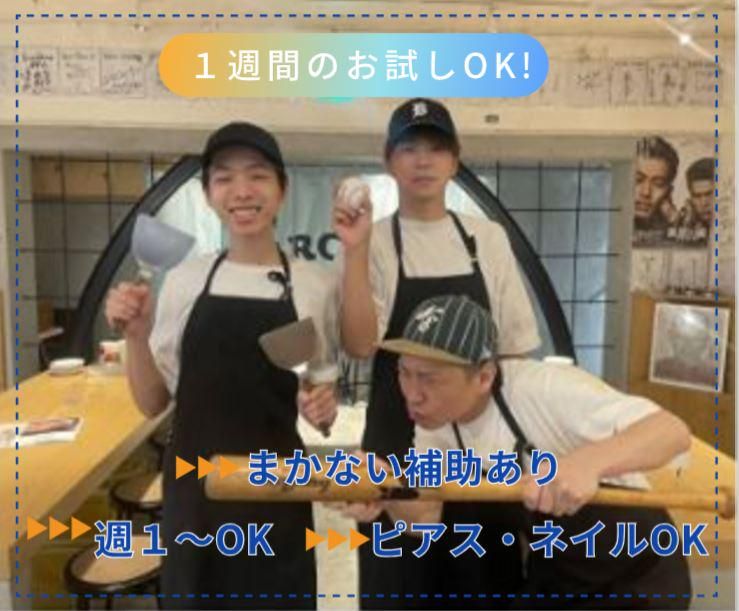 仕事内容 \\ この求人のアピールポイント // ✅野球好き必見のお好み焼きバル! ✅未経験OK!学歴も不問です◎ ✅週1日~、1日4時間~OK! ✅髪型・髪色・ネイル自由♪ ✅有名人、スポーツ選手も訪れる人気店! *****仕事内容****** 隠れ家風お好み焼き店にて カウンター越しの 接客のお仕事をお任せします。 プロ野球が好きな方も歓迎! おすすめメニューは 野球のスタメン発表のように 黒板に書くなど プロ野球好きなら 思わずニヤリとしてしまうお店です! *****具体的なお仕事****** ◎ホール ■注文取り ■お会計 ■料理の提供 ■席の片付け(バッシング) ■簡単な清掃 ■盛り付け ■ドリンクづくり など できることからお願いしていきます。 少しずつ慣れていけるので安心ですよ♪ ****1週間のお試し勤務可***** まずは1週間のお試しで働きたい! という方もご相談ください。 1週間後にどうするか 店長と面談して決めることができます◎ *****当店について****** 代々木駅から徒歩2分の好立地! ワンフロア、34席の 本場広島のお好み焼きと 鉄板焼きのお店です! 社長の学生時代は野球一筋! 店内には著名人のサインもたくさん! 有名人やスポーツ選手が 来店することも♪ 打ちっぱなしのコンクリートに 木目のカウンターと、 社長がこだわって作った オシャレな内装は カフェのよう! SNS映え間違いなしの お店で働いてみませんか?