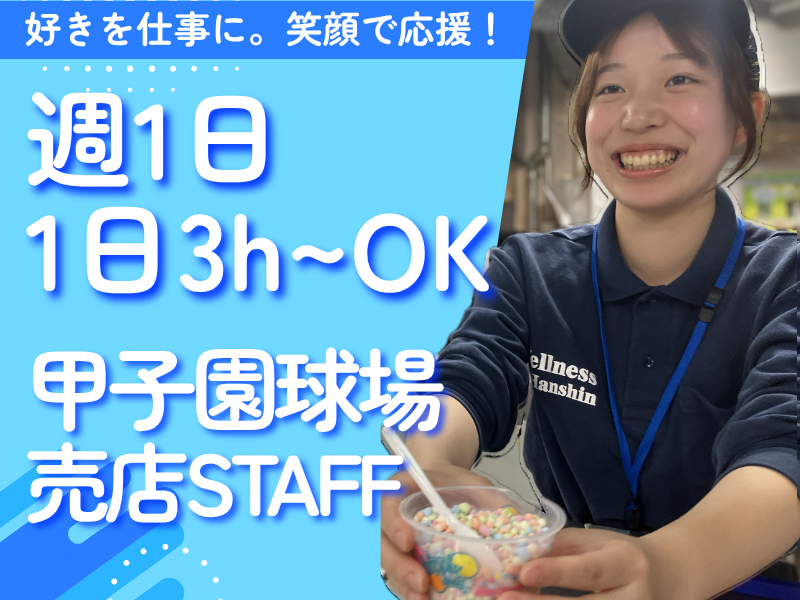 仕事内容 =====⭐先輩スタッフの志望理由⭐===== 「野球の応援歌を聴くとテンションがあがるから!」 「イベントの楽しい雰囲気の中働いてみたかったから」 「笑顔を提供するバイトをしてみたかったから」 「学校との両立がしやすそうだったから」 ちょっとでも「わかる!」って思ったら 甲子園の熱気の中で、一緒にお客様を笑顔にしませんか? ======================== ✅阪神甲子園球場内のフード売店にて 簡単な調理とレジ、接客など販売業務をお任せします! 一番大事なことは【笑顔で接客をすること】 難しく考えなくてもお客様も”甲子園”という お祭り会場に来ているので自然に明るく楽しく働けます! ✅シフトが超自由!週1~/1日3h~OK 自分が入れる日数でシフトが出せるので 学校やサークル、掛け持ちバイトとも両立◎ 前日まで追加の希望も出せます♪ もちろん、短期もOK! 急な休みなども相談してもらえれば調整します ✅サークル感覚で働いて一生の思い出つくろう! スタッフのみんなが圧倒的に仲が良く、 楽しく働けることが大きな魅力♪ 仲がいいからこそ、初めてのバイトデビューにもピッタリ! 先輩たちがしっかりサポートします♪ <面接はWEBでも対応可能!> ●WEB面接対応中!リモート面接OK!面接のために来社しなくてもWEB上で完結♪