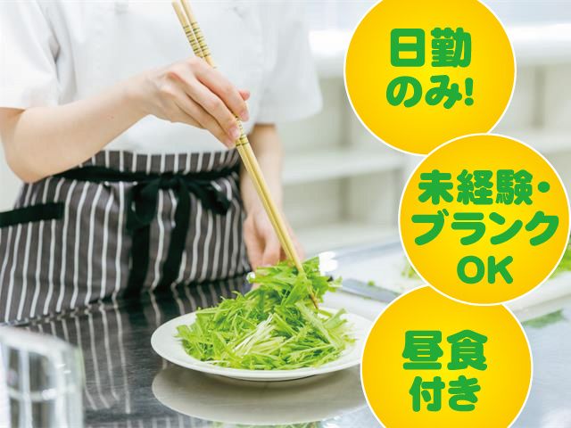 仕事内容 \1日4時間・週3日程度の勤務/ 扶養内で働けます!! 給食受託サービスを行うイートランド(株)では 前橋市荒牧町あるデイサービスにて 調理補助をして頂ける、 パートさんを募集しています! 利用者さんたちが楽しみにしている 昼食を一緒に作ってみませんか? ━━━━━━━━━━━━━━━━━ 【アピールポイント】 ≪未経験・無資格・ブランクOK≫ 資格や経験のない方でも丁寧に指導いたします! ご家庭での料理経験があれば大丈夫! 子供たちが楽しみにしている 毎日の給食を一緒に作りましょう! - ≪働き方について≫ 時間は10時~14時の実働4時間 お子様が学校に行っている間に働けます。 週3日程度の勤務可能で、 基本的に残業はありません。 扶養内勤務もOK!お気軽にお問合せください。 - ≪働く環境について≫ 少人数の職場でストレスも少なく働けます。 小さなお子さんがいらっしゃる方、 子育てがひと段落した主婦の方など 男性・女性共に活躍中です。 - ≪入社日応相談≫ 在職中の方も、面接日や入社日は 柔軟に対応させて頂きます。 お気軽にご相談ください。 ━━━━━━━━━━━━━━━━━━ 【具体的な仕事内容】 ・簡単な盛付け ・食器や調理器具の洗浄 ・食材のカットなど ※約30~40食を2名程度で調理します 難しい作業はありません。 使った食器を洗ったり、野菜の皮をむいたり 簡単なお仕事からお任せします!! ━━━━━━━━━━━━━━━━━━ 【おすすめキーワード】 管理栄養士/調理スタッフ/調理補助/日勤 経験者優遇/未経験OK/長期休暇あり 短時間勤務/週3日~/少人数の職場 残業少ない/制服あり/子育てしながら働ける 交通費支給/まかないあり/食事付き/有給あり 扶養内OK/夜勤なし/交通費全額支給/週休2日
