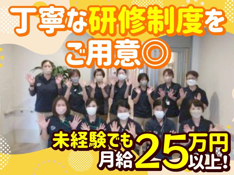仕事内容 ◆未経験・第二新卒も大歓迎 ◆初めての介護職にもピッタリの職場 ◆月給25万円×賞与年2回あり ◆完全週休2日制で私生活も充実 ◆ICT設備導入で負担の少ない介護のお仕事 ―――――――――――――――――――― / 1日の歩数は半減!無理をしない介護現場で、 介護のお仕事にチャレンジしてみませんか。 \ 『介護の仕事には体力的な負担がつきもの』 そう言われ続けているからこそ、 弊社ではもっと楽に働くことができるように ICT機器などの最新設備を積極的に導入。 スマホ1台で管理ができるシステムの導入や インカムで簡単に情報を共有できる 環境を整備し、業務の効率が大幅に向上しました。 結果として職員の1日の業務歩数が半減! より楽に、より無理なく働ける 介護現場を実現することができました。 そんな職場だからこそ、 初めての介護のお仕事にピッタリ職場! 余裕を持った職場で時間をかけて 介護のイロハを教えることができるので 未経験でも着実にステップアップできます。 ★完全週休2日でメリハリを持った働き方! ▽ 曜日はシフトによりますが、 それでも毎週2日はお休みの完全週休2日制。 また、週2日の休み以外にも 夜勤明けの明け休みもあり、 実質週休3日のような働き方です。 プライベートの時間もあるため、 趣味や推し活に没頭するための時間や 友人や恋人と過ごす時間も しっかり確保することができますよ。 =========== 【業務内容詳細】 ◆有料老人ホームでの介護業務全般。 ▽ ・食事介助 ・排泄介助 ・入浴介助 ・健康チェック ・服薬管理 ・レクリエーション など 介護度の低い利用者様中心で負担も少なめ。 事務作業もスマホ1台で完結するので、 PC操作やタイピングが苦手な方も安心です! <入社後の流れ...> まずは介護のことや弊社のことについて、 学んでいただく座学研修からスタート。 その後は教育担当の先輩スタッフともとで、 業務の流れなどを学んでいただきます。 いきなり難しいことはせず、 食事介助やレクリエーションのサポートなど ハードルの低いシンプルな介護業務から 少しずつ慣れていきましょう! 未経験向けの育成制度も充実しているため、 将来的には介護福祉士までの キャリアアップも目指すことができます。 ICT機器の研修もしっかり行うので、 『ITとかICTとかよくわからない...。』 という方も安心してください。