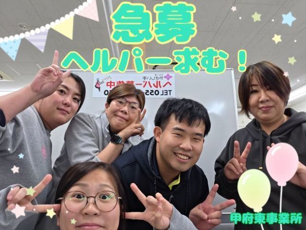 PR 基本時給1,060円~1,160円(資格や経験年数による昇給制)、日曜・祝日1,404円~1,566円(35%UP) 【上記基本時給以外に支給される手当※支給条件あり】 ・業務手当5,000円 ・子育て支援手当5,000円 ・評価手当500円~5,000円 やさしい手甲府は、今年創立20周年を迎え、地域の皆様に介護を提供すると共に、高齢者が住み慣れた地域社会で、安心した生活が送れるよう総合的な在宅介護サービスを行っています。 【女性にうれしい福利厚生】 やさしい手甲府は、女性が多く働く職場です。 そのため、女性にとって働きやすい環境が整備されています。 「結婚したから・・・」「妊娠したから・・・」という理由で辞める方はほとんどおらず、 生活環境が変わっても継続して勤務を続けることができます。 産前産後休暇・育児休暇はもちろんですが、店舗数が多いことによる勤務地の配慮、時間短縮勤務も可能です。 産後明け復帰も慣れるまでのフォローは万全。働きやすい環境が整備されています。 【責任者より一言】 事業所はアットホームな雰囲気で店舗の皆様に支えながら日々勉強してます 様々な方々と係り、良いサービスを提供し、ご利用者さんや、ご家族に元気になって頂ける。 そんなサービスを組み立てる事ができる事がサービス提供責任者のやりがいです。 「現場の技術向上だけではなく知識も向上させて行きたい」と考えている方、「介護の知識だけではなく介護技術も向上させて行きたい」と考えている方にとって最適な環境です。 更にステップアップ 正社員登用制度あり ハローワーク同時掲載中 ◆◆お仕事説明会随時開催中◆◆ 履歴書不要 お子様連れでも参加可能 詳しくは下のURLをクリック↓↓ http://www.yasashiite-kofu.co.jp/recruit/#t1000583 やさしい手 甲府は、新型コロナウイルスの対応として、感染予防や皆様の健康、働きやすさを大切にしています。 ・出勤時には検温での健康管理や、事業所入り口にはアルコール消毒液での消毒を徹底しています。 ・お子様が学校をお休みになっても、皆さんの働きやすさを大切にしておりますので、働き方について是非ご相談ください 【会社概要】 会社名:株式会社やさしい手甲府 事業内容:介護事業 本社:山梨県甲府市上石田1-7-14 社員数:常勤社員220名、ケアスタッフ800名 URL:https://www.yasashiite-kofu.co.jp/