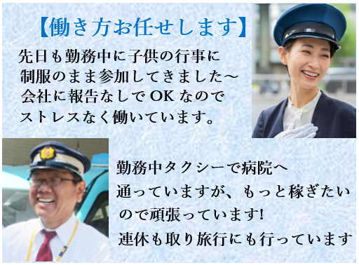 ■仕事内容 \普通免許があればOK!未経験者歓迎/ ライフスタイルに合った働き方を選べる、タクシー養成員のお仕事です! 2ヶ月の給与保証があるので安心! 圧倒的顧客数の南州タクシーなら、未経験スタートでも年収700万円オーバーが叶います! 【アピールポイント】 ・出退勤時間の調整可能!中抜けも自由にOK! ・全額会社負担で二種免許の取得可能! ・免許取得中は生活費補助もあります! ・全車両オートマチック車両! ・タクシードライバー初心者養成員も大歓迎!! ~働き方は自由!長期休暇も取れる~ 働く時間設定は7-20時や9-18時など様々。設定した時間より遅めに出勤しても、早めに退勤してもOK! もっと頑張りたい方は、設定された時間より多めに勤務し、収入アップを目指してもOKです! ~業務の途中で抜けてもOK~ 自分の用事やお子さんの授業参観などで途中で抜けてもOK! 業務途中にタクシーで病院へ行ったり、制服のままお子さんの授業参観に行っても構いません!仕事、プライベート、家族の用事など全て充実するのがこの仕事の魅力です! ~顧客数が多いから、しっかりと稼ぐことができる!~ 南州タクシーの顧客数はとにかく多いです。ご高齢者様をタクシー会社としてお守りする「あんしんカード」などはご高齢者様やご家族様にとてもご好評いただいております。 そのかいあって、お客様を探しに走り回ることなどしなくても、信頼と実績から送迎の依頼のお電話を多く頂いております。 「南州さんしか乗らないよ。」っと言ってくださるファンの方も多く、ありがたいです! ~会社からの配車依頼をこなすだけで稼げる!~ 未経験スタートの方も、配車依頼をこなすだけでしっかり稼ぐことができます。 月に50万円以上稼がれる方が10%以上!60万円以上も可能です! また、当社はいち早く「メーター連動型キャッシュレスサービス」も展開。使い方はとても簡単ですし、しっかりと研修もあるのでご安心ください! ~研修があるので未経験でも安心~ 新人乗務員でも即戦力となれるよう研修システム、ケアシステムも充実しています! 経験にもよりますが、二種免許の取得や地理試験の合格から、タクシー車載器の使い方、お客様への接し方など、様々な研修を受けることになります。 実際にお客様を乗せるようになったときに困らないように、しっかり指導をしますのでご安心ください! 【応募資格】 ・普通一種免許取得3年以上(AT限定可)の方 ・経験不問、学歴不問 【あれば尚可】 ・普通二種免許 【こんな方は歓迎します】 ・お客様への丁寧な対応ができる方 ・チームプレイを大切にできる方 ・ハイヤー・タクシー乗務員の経験がある方 ・未経験から新しいことに挑戦したい方 ・今よりも収入を増やしたい方 ・未経験者歓迎、初心者OK ・地元で長期安定して働きたい方 ・UIJターン歓迎 【勤務地は選べます】 鹿児島市内6営業所のうち、希望勤務地考慮します! ・本社営業所(西坂元) ・鹿児島駅営業所(小川町) ・中央駅営業所(武町) ・桜ヶ丘営業所(桜ヶ丘) ・伊敷玉里営業所(下伊敷) ・吉野営業所(吉野) ■仕事の特徴 主婦・主夫歓迎 フリーター歓迎 学歴不問 未経験・初心者OK ブランクOK