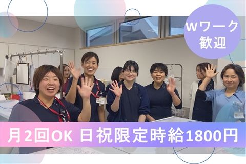 スポット勤務・月3回OK!入浴介助や受け持ちなしのお仕事☆日祝限定で時給1800円♪WワークOK★17:00まで【たつの市、精神科病院/病棟、竜野駅、看護師、日勤パート】