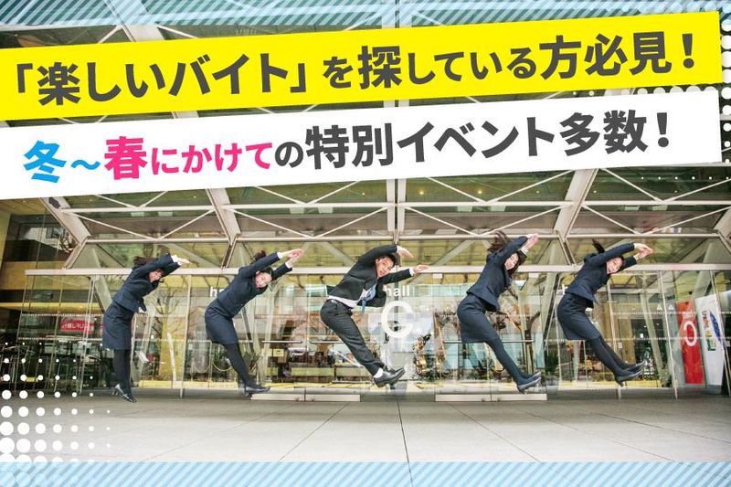 求めている人材 *未経験OK *学歴不問 *無資格歓迎 *Wワーク歓迎 *副業歓迎 *年齢不問 *友達と一緒に応募OK *高校生OK! (合格後、保護者からの承諾をいただきます。) アルバイト、イベントスタッフ、 短期・単発アルバイト、短期バイト、 日払いなど早く収入をGetしたい... などを求めている方にオススメです! ◇未経験から始めたスタッフ多数♪ 先輩が仕事の流れなどイチから教えます! まずは笑顔で挨拶できればOK♪ 初バイトの方も安心して勤務できます。 ◇志望理由はなんでもOK♪ ・イベントスタッフやってみたい 家の近くで働きたい ・単発、短期で働きたい 新生活の準備でちょっと金欠 ....こんな志望理由も全然OK★ ★U・Iターン歓迎 登録後、すぐに働けます! ★20代が多い職場ですが 幅広い年代が在籍中です! ★「レギュラーバイトとの掛け持ち」 「イベントが好き」といった応募、 大歓迎! ★短期も長期勤務もOK! ★副業OK・WワークOK! ★単発勤務ももちろんOK! 「稼ぎたい」と思ったタイミングで 勤務OK ★友達紹介制度あり 紹介したお友達が初回勤務をすると3000円のボーナス支給! .。.:.。.:.。.:.。.:.。.:.。.:.。 ※当社では、 皆様の勤務可能なスケジュールを 事前に聞いた上で お仕事をお願いしています。 たくさんのイベントに 参加してみて下さい! 【★イベントを支える 重要なお仕事です!】 <来社不要!登録はweb上で5分程度> ご自宅でも完結できるので 「今後の勤務のための事前登録」 「そろそろ本格的に 働けるバイトを探してた」 という方、大歓迎です! もちろん短期の方も大歓迎! 掛け持ちバイトとしても最適です! みんなで力を合わせて、 コンサートやイベントを 成功に導く達成感は最高です!
