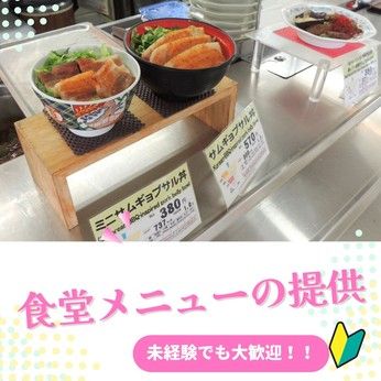 資格 "学歴不問","経験不問","未経験者歓迎","経験者歓迎","長期できる方" 食堂は、毎日メニューが変わって変化があるので、 食べることが好きな人は楽しく働けます。 ずっと盛り付け・提供をしているわけではなくて、 食堂内の清掃や食器洗浄で動くので、あっという間に 時間が過ぎちゃいます!