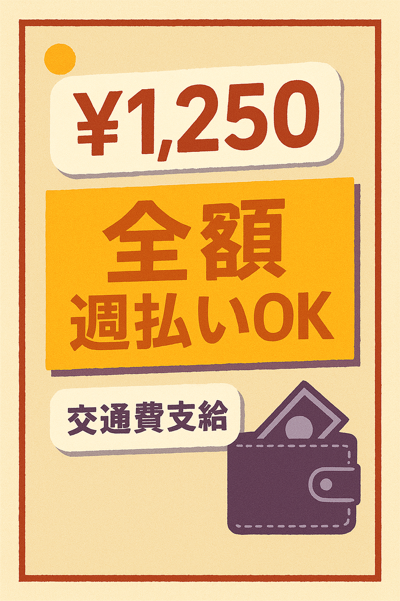 時給1,250円~1,563円 給与詳細 基本給:時給 1250円 〜 1563円 ■通勤手当あり ■昇給・昇格あり