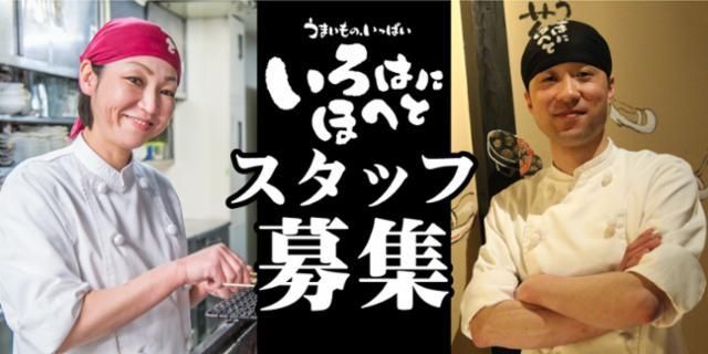 仕事情報 ● 仕事内容 お客様の接客です。 お席へのご案内からお料理の提供、ご予約受付やお会計など。 マニュアルに沿って接客基礎を学べます。働きながらマナーを 学びたい方にもお勧めです。 シフトは毎週作成 毎週作成するのでスケジュール管理がとっても簡単◎学校のテストや帰省など、その週の予定に合わせて勤務ができます 勤務時間も柔軟に♪ いろはにほへとは柔軟に勤務時間を選択できます◎ 「週末は子供をパパに3時間だけお願いして出勤☆」 「テスト期間はお休みして、終わったら沢山働く!!」 「仕事後に、2時間だけアルバイト!!」が可能です♪ 未経験でも安心☆髪毛自由 髪の毛の色は自由だから、皆さんの個性を尊重☆ 挨拶の仕方や、ユニフォームの着用方法、清潔な手洗い方法から 順番に、一つずつ丁寧に教えます♪アルバイト未経験、接客未経 験、料理を作った事が無い方でも心配無用 「いろはにほへと」とは うまいものいっぱい・いろはにほへとはその名の通り、うまい料 理をお手軽、お気軽に楽しんでいただける居酒屋です。 活気のある店内で今日も地域のお客様を「うまい!」で癒します ☆