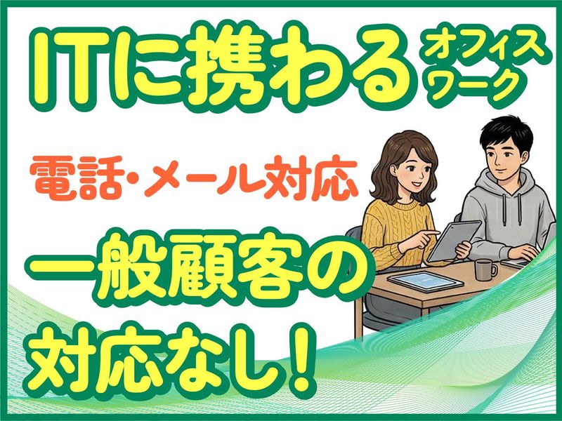 求めている人材 経験不問 未経験者OK! PCの基本操作ができる方 <歓迎する経験やスキル> *テクニカルサポートの経験がある方 *IT業界に興味がある方 *お客様のサポート経験がある方