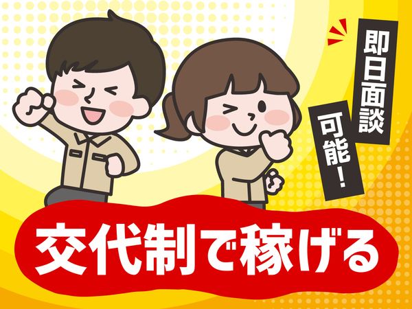 選考フロー 応募する ▼ 面接…過去の職歴/希望のお仕事をヒアリング ▼ 見学…条件に合ったオシゴトのご案内・工場見学 ▼ 就業決定 応募いただいてから、 最短二日で就業が決定する人もいます✨ \ カンタンWeb応募 / ■24時間いつでも・どこでも応募可能! ■即日対応!即日面接可能!