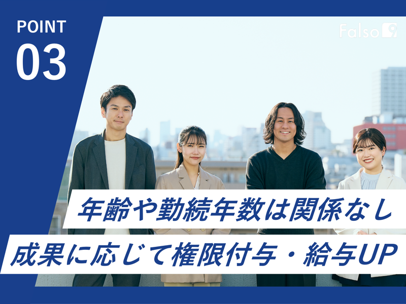 仕事内容 SES事業の営業ポジションです! 営業のみではなく、エンジニアの採用から一貫して携わっていただきます! メンバーからスタートし、幅広いキャリアパスを用意しています! 幹部候補のキャリアパスもあり、最短1年で役員就任も可能です! ▍業務内容 ①営業メンバー ・ENDクライアント(事業会社/元請け/Sler等)の開拓 ・パートナーの開拓、情報交換 ・案件に対する自社社員、フリーランス、パートナー要員のマッチング ・自社社員、フリーランスに対しての案件のマッチング ・エンジニアとの面接・面談・キャリアコンサルティング ・エンジニアの管理・フォロー etc... ②営業マネージャー ・営業戦略、営業計画、KPI作成/管理 ・営業メンバーの採用・マネジメント ・業務フローの設計/運用 etc... ▍この募集のメリット 【1】営業だけでなく、採用にも携わる 営業に加え、面接やキャリアコンサルティング、組織構築など 営業を中心に幅広い業務に携わることが可能です! 【2】戦略的営業力 一般的なSES営業にあるような、単なるスキルマッチングではなく、 関係構築や情報収集〜企画、提案まで戦略的なアプローチが求められます! 【3】エンジニアの人生を変える エンジニアのキャリア実現や成長に伴奏していただき、 自分の力でエンジニアの人生に大きな影響を与えることができます! ▍幅広いキャリアパス 【1】役員として事業統括、経営に関与 最短1年で役員就任のチャンスがあります! SES事業部の担当役員として、事業統括と経営企画を担っていただきます! 【2】IT×営業を極め、とにかく稼ぐ 現場で自身の営業力を極めていただきます! インセンティブは上限なく、成果に応じて青天井で稼ぐことが可能です! 【3】新規事業や別業務にチャレンジ 更なる成長のため新規事業の構想も進んでおり、 新規事業の担当や、人事や社内DX等、別業務へのジョブチェンジも可能です! 【4】フルリモートでプライベートと両立 働き方を重視する方向けのキャリアパスもあります! ライフステージに合わせて柔軟な働き方を選択可能です! ▍ファルソナインのカルチャー 【1】成果主義 年齢や勤続年数は関係なし! 成果に応じてどんどんステップアップが可能です! 【2】20代のメンバー中心 役員含む内勤メンバーの大半が20代! 社内のイベントやコミュニケーションも活発です! 【3】メリハリある雰囲気 仕事もプライベートも全力で取り組み、 どちらも充実させることを目指しています! ▍ファルソナインの働き方 【1】最短での成果を目指す ファルソナインでは、『成果を出すための仕組み作り』に力を入れており、 ノウハウの蓄積やAIツールの活用を積極的に行っています! 【2】業務効率化 業務効率化にも力を入れており、 本質的な業務に集中できる仕組みを構築、生産性の向上に努めています! 【3】コワーキングスペース無料 グループで運営するコワーキングスペースを無料で利用可能! 各種勉強会やワークショップ、交流会等のイベントも実施しています!