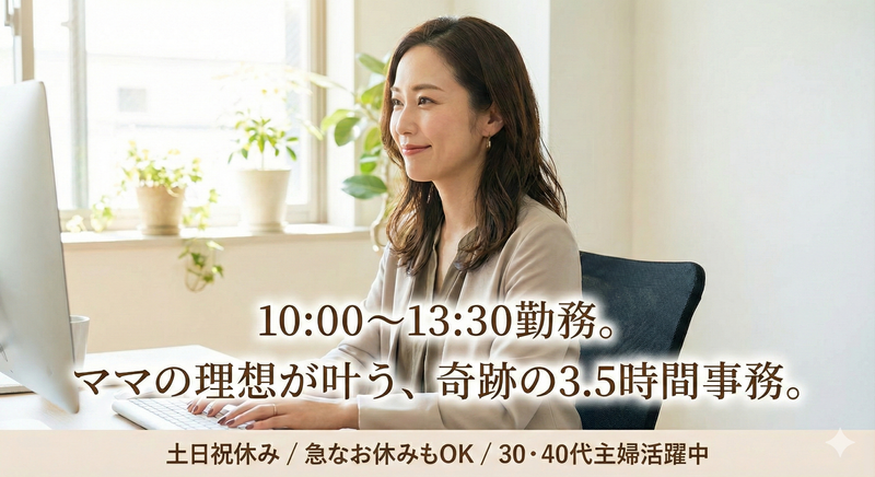 10:00~13:30の固定勤務|30代・40代主婦活躍中!