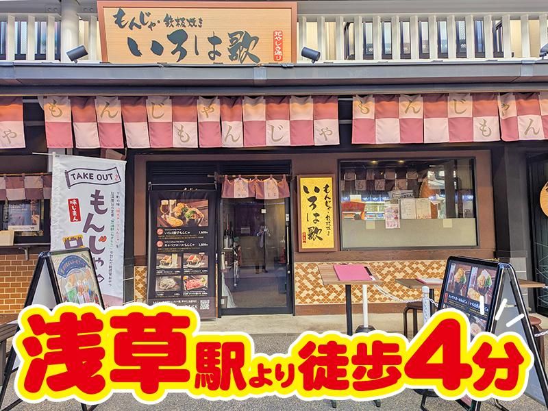 仕事内容 浅草花やしき通りににて元気に営業中!! 幅広い世代に愛されているもんじゃ焼き& 鉄板焼きの専門店でのホールのお仕事です✨ <✨この求人のお勧めポイント✨> ⭐注文はタブレット任せで安心◎ ⭐お仕事はシンプル作業ばかり♪ ⭐バイトデビューも歓迎!! ⭐最初から時給1,400円スタート! ⭐週1日〜・1日3時間〜OK! ⭐シフトの相談も大歓迎です♪ - 【具体的なお仕事内容】 ✅お席へのご案内 ✅お料理やドリンクの提供・ドリンク作り ✅オーダー対応 (基本タブレットでらくらく♪) ✅テーブルセット ✅開店準備 ✅片付け - などをお願いします! お客さんがテーブルの鉄板で 自分で作って楽しむスタイルだから、 接客はシンプルで簡単! オーダーはタブレットなので、 店内を走り回る必要もありませ~ん。 最初は流れを覚えることからスタート! できることからお願いしていくので 少しずつ慣れていけばOK✨ もちろん困ったときは先輩や店長がすぐ サポートしてくれるから心強い♪ 未経験でも安心してスタートできますよ☆ 「バイト始めたいけど、 忙しいから無理かな…」 と思っているそこのアナタ! 私たちのお店では、学生さんや忙しい方でも 無理なく働ける環境を整えています✨ ⭐どんなお店?⭐  ̄ ̄ ̄ ̄ ̄ ̄ ̄ ̄ ̄ 浅草・花やしき通りにある もんじゃ&お好み焼きの専門店です! 下町のにぎやかな雰囲気の中で、 ワイワイ楽しく自分たちで 鉄板を囲んで作るスタイルだから 気軽に働けるのが魅力です♪ 経験ゼロでも大丈夫!スタッフみんなで フォローするので安心して働けます◎ ⭐働きやすさバツグン!⭐  ̄ ̄ ̄ ̄ ̄ ̄ ̄ ̄ ̄ ̄ ̄ ̄ ̄ 基本は【10:00~15:00】 【16:00~23:00】ですが 短時間希望の方や通し勤務もOK! 「週1日だけ」「土日祝だけ」 「学校長期休みはガッツリ働きたい」 「テスト期間は休みたい」 「スタート時間を遅らせたい」 「この日は早めに上がりたい」 ぜーんぶ相談OK! あなたの予定に合わせて働けます。 さらに【2週間ごとの自己申告シフト制】 なのでプライベートとの両立もバッチリ◎ ⭐時給は頑張りをしっかり還元⭐  ̄ ̄ ̄ ̄ ̄ ̄ ̄ ̄ ̄ ̄ ̄ ̄ ̄ ̄ ̄ ̄ スタート時給はなんと【1,400円】! 「ちょっと頑張って貯金したい」 そんな方にも最適です✨