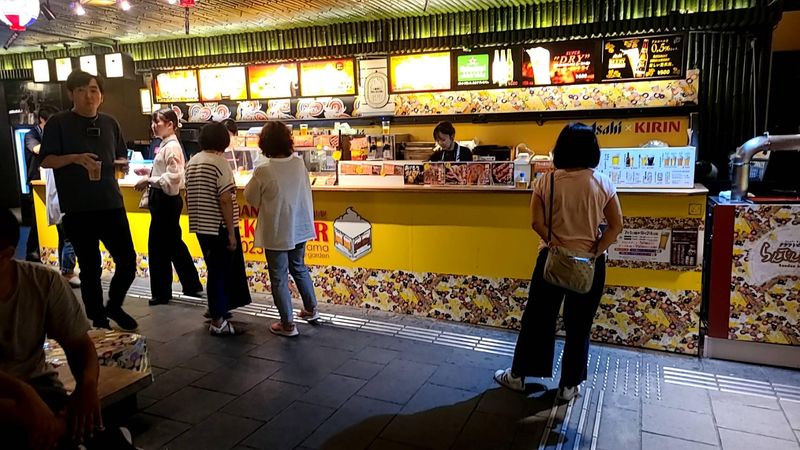 観光地嵐山駅でのビアガーデンスタッフ
