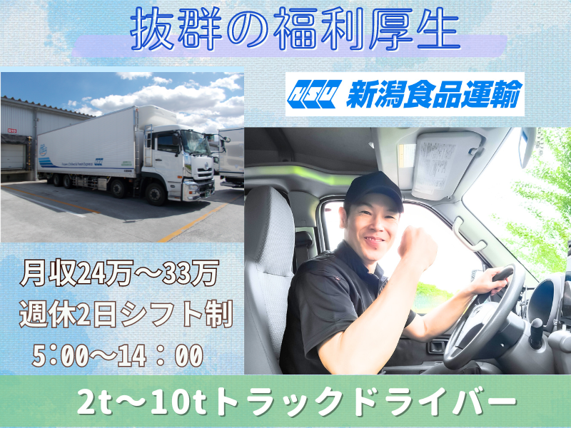 その他 どんなお仕事内容? 食品の配送♪【県外無し・地場の配送のみ】 食品の配送。 冷凍トラックを運転し新潟県内のスーパーマーケット・市場や外食産業に食品の配送をお願いします★ 未経験者も多く活躍しています◎ 未経験活躍中 誰もがドライバーとして活躍できる環境を整えています。 免許が無い方は、ご相談お願いします。 ・ベテランのドライバーと同乗研修を行い、運転技術、 積み込みの流れなど学びます。 (1か月~3か月) ・「一人で大丈夫」と判断されれば、一人でスタート。 株式会社新潟食品運輸(NSU)ってどんな会社? 品質を物流するNSUのトータルソリューション 創業以来、日常生活に欠かすことの出来ない食品の物流を専門として、新潟県の「食品のインフラ」を支えてきました。 新潟県から長野、群馬を含め拠点は18ヶ所。 当社の取扱量・売上高は新潟県内トップクラスを誇ります。 人々の生活に欠かすことの出来ない「食品」に携わっておりますので、景気に左右されません。 「保管・仕分け、配送」だけでは無く、物流の企画・立案などお客様に物流全体のコーディネートをお任せいただけるよう事業展開をしています。 お仕事No:長岡センター 2t~10t地場配送<260206>