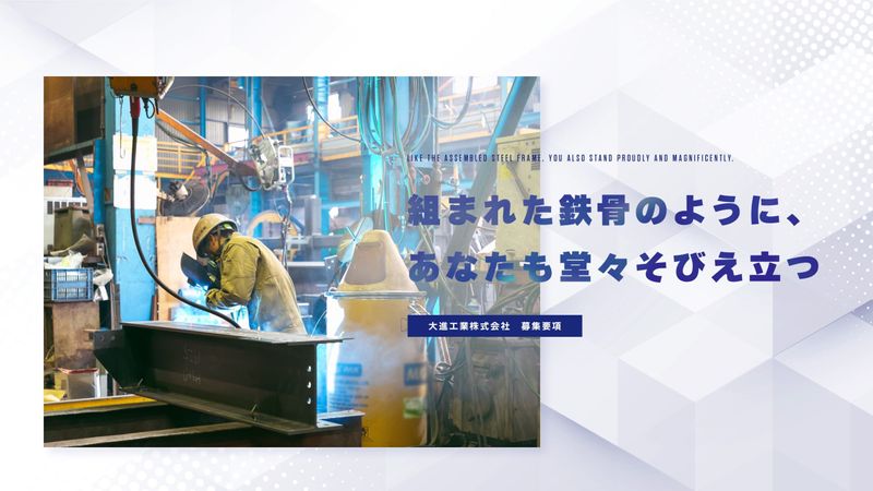 必要資格・経験 // 20~40代の計9名が活躍中! 年代関係なしにコミュニケーションが取れており、 仲が良いのも特長! \\ 【 必須 】 ・普通自動車免許(AT限定可) ・溶接管理技術者:2級以上 ・鉄骨製作管理技術者:2級以上 (外国籍の方は以下必須) ・N1の合格証明書 ・N1レベル以上の日本語言語能力 【 優遇 】(工場長候補の方は、複数所持必須) ・半自動溶接:SA-3FH以上 ・AW検定(工場溶接) ・超音波探傷試験(UT)レベル1以上 又は 鉄骨超音波検査技術者 ・鉄骨製品検査技術者 ※グローバル人材の採用について Only candidates who meet all of the following requirements are eligible for employment: Advanced Japanese language skills (JLPT N1 level): Must be able to read and write Hiragana, Katakana, and Kanji• Business-level fluency in Japanese Must possess a valid visa status that permits work• Practical work experience in the IT industry (approximately 2 years) 【 POINT 】 ✓U・Iターン歓迎 ✓20代30代の若手活躍可 ✓40代以上の方も活躍可