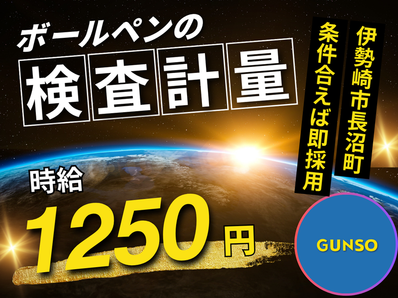 仕事内容 【給与】 ✅時給1250円~1563円 【リアルな収入例】 ✅月収20万6250円 【勤務地】 ✅伊勢崎市長沼町のボールペン製造メーカー 【仕事内容】 ボールペン金属部品の検査・計量 ✅未経験の方でも大歓迎! ==================== 本求人は、群馬総合スタッフ株式会社が 派遣先企業の依頼により行う人材派遣の求人です。 ※お仕事は長期で就業可能です ==================== 【群馬総合スタッフについて】 あなたの"働きたい"を全力応援! 少しでも興味を持っていただいた方は、まずはエントリーください。「どんな仕事?自分でもできる?きちんと稼げる?」こんな不安を、専任担当者があなたの目線で就業までしっかりサポートします♪ \当社ではお仕事多数ご紹介可能!/ ✅日勤のみ・残業なし ✅交替勤務・ガッツリ稼げる ✅高収入案件多数! ✅土日祝休み・年間休日120日以上 ✅未経験OK・学歴不問 などアナタにあったお仕事をご案内いたします! まずはお気軽にご相談くださいね♪