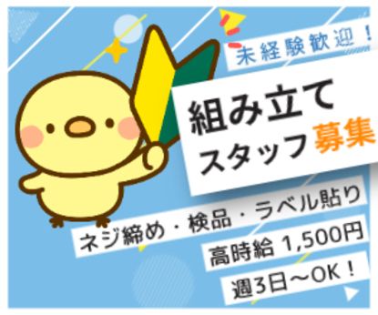 仕事内容 ■医療機器の製造に関するシンプルなお仕事です! 組立作業:マニュアルに沿って部品を組み立てます。 ラベル貼り:完成した製品や部品にラベルを貼ります。 通電チェック:コネクターをつなげてボタンを押して電気が通っているか検査します。 はんだ付け:基板への部品取り付けなど(経験不問!) 経験がなくても先輩スタッフが丁寧に指導しますのでご安心ください。 難しそう...という方も、まずは簡単な作業からスタートできます! ■未経験でもご安心ください! しっかりとしたマニュアルがある & 先輩スタッフ(社員の方)がマンツーマンで しっかりと教えてくれるのでご安心下さい! 繰り返しの作業が好きな方や 部品を丁寧に扱える方にお勧めです! ■ポイント ・お昼は持参or仕出し弁当! おいしい食堂は無くて申し訳ないですが 仕出し弁当を注文できるので持参の手間は省けます! ・制服貸与 作業着の上着を貸与します。 会社に到着したら羽織るだけなので着替えの手間なしです!
