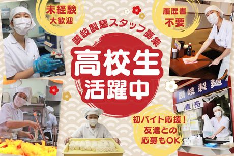 仕事内容 【仕事内容】 <未経験ok♪幅広い世代のstaff活躍中☆> <食事補助あり☆メニュー全品50%off♪> <頑張りに応じて昇給あり☆> <★キッチンの仕事内容★> ・注文伺い ・調理・調理補助 ・食器洗い ・厨房の清掃 など <★讃岐製麺のここがオススメ★> ・本格的なうどんが作れちゃう! →店内で小麦粉から機械を使用して作っています! 材料を混ぜる・こねる・休ませる 打ち粉をしながら機械で伸ばす・切る・茹でる などと全ての工程を担当することができますよ♪ ・簡単な調理も多数! →おにぎりは専用の機械があり、 天ぷらはねり粉をつけてレシピ通りの時間で 揚げるのみです。 経験関わらず先輩が側にいるので わからないことがあれば、 ひとりで悩まずにすぐに聞ける環境です♪ ・レシピがわかりやすい →1品1品のレシピが調理場にあります! 揚げ物でも形が崩れた際に 提供していい物か悪い物かの 判断基準が厨房内に貼ってあるので 未経験でもわかりやすい! ・勤務中にご飯を食べる場合、メニュー全品50%off →出来立てうどん・その他天ぷらやおにぎりなど 全メニュー半額で食べられます! 健康志向の方や節約中の方・コンビニ食が多い方には よりオススメの福利厚生です★